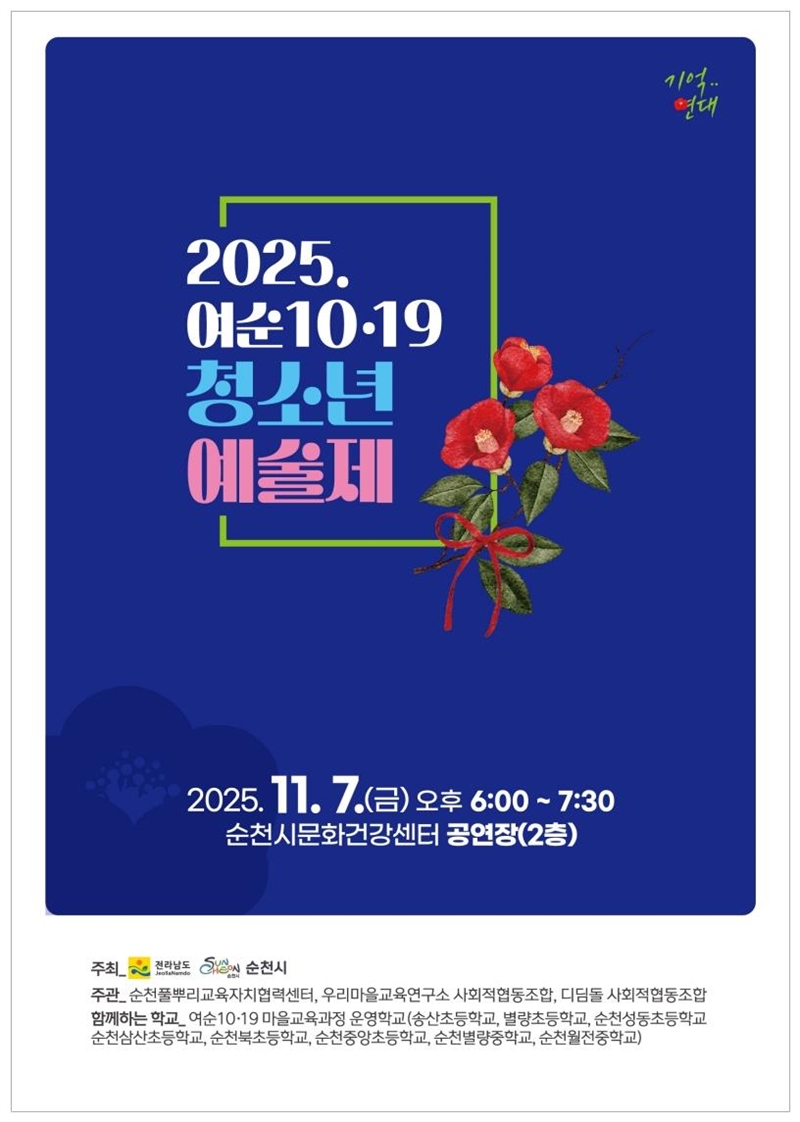 오는 7일 순천시문화건강센터에서 여순사건을 주제로 한 여순10․19 청소년 예술제를 개최한다.