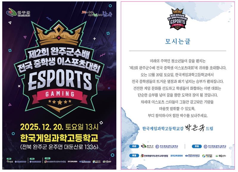 완주군이 전국 중학생을 대상으로 한 공식 e스포츠 대회를 개최한다.