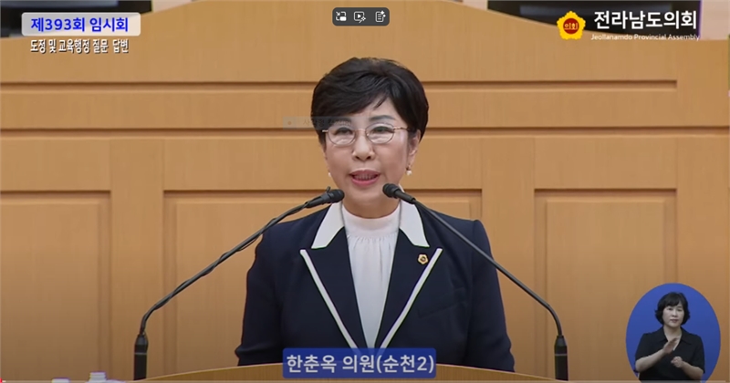 [한국다중뉴스 = 정중훈 기자]전라남도의회 한춘옥 의원(더불어민주당, 순천2)은 제393회 임시회 도정 및 교육행정에 관한 질문에서, 학교 급식 종사자의 실태에 대해 지적하고 종사자들의 처우와 노동 환경에 대한 개선을 촉구했다. 학교 급식 종사자들은 고온·고습 등의 열악한 근무환경과 고강도 노동으로 각종 질병과 잦은