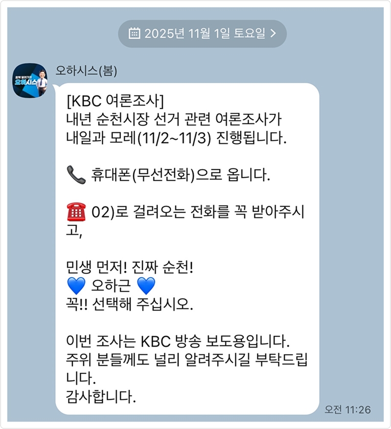 [한국다중뉴스 = 정중훈 기자]오하근, 여론조사 사전정보 유출로 여론조사 왜곡 논란 - 특정일과 수신전화 번호등 사전공지 여론조사 왜곡 - 여론조사왜곡 손훈모 공천 날라가고, 김문수 유죄 엄하게 적용 - 민주당 경기 의왕·과천 경선, 사전공지 여론 조작 유죄 받기도 - 민주당 중앙당 차원 감사 필요성 제기 26년도 순천시