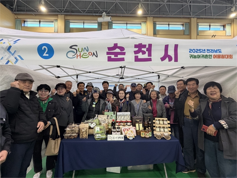 [한국다중뉴스 = 양희성 PD]순천시(시장 노관규)는 14일 완도군 청해진스포츠센터에서 열린 ‘2025년 귀농어·귀촌인 어울림대회’에 참여해 순천시 귀농인 생산품 및 농특산품 전시관을 운영했다고 밝혔다. 시는 전시·홍보관에 송화버섯, 샐러드 채소, 상추 등 신선 농산물과 매실청, 산돌배청, 전통장류 등 지역을 대표하는