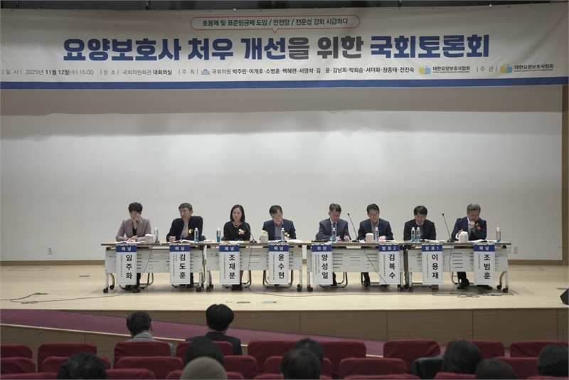 11월 12일(수) 15:00 국회의원회관 대회의실에서 국회의원 박주민·이개호·소병훈·백혜련·서영석·김윤·김남희·박희승·서미화·장종태·전진숙, 대한요양보호사협회가 주최하고, 대한요양보호사협회가 주관한 ‘요양보호사 처우 개선을 위한 국회토론회’가 있었다.