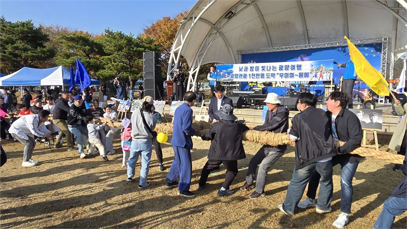특히, 1642년 김 창안가 김여익이 세계 최초로 김을 발견한 배알도 수변공원에서 '김 풍작 기원' 전통민속놀이 용지큰줄다리기를 활용한 ‘낮과 밤이 빛나는 광양여행, 광양관광 1천만명 도약’ 줄다리기 퍼포먼스는 방문객의 시선을 사로잡았다.